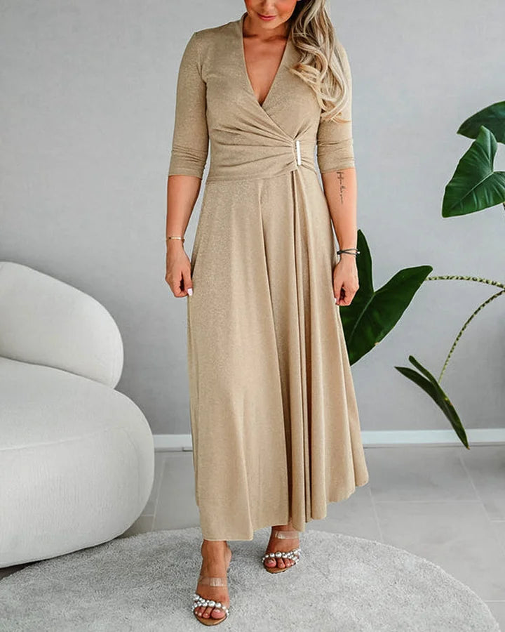 Elegantiška vienspalvė suknelė, trijų ketvirčių rankovėmis