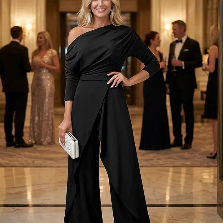 Elegantiškas, moteriškas, plačių kelnių komplektas