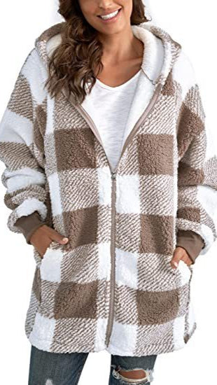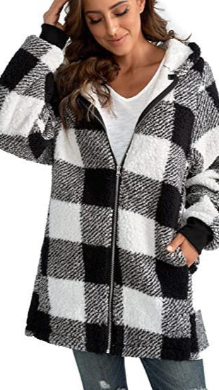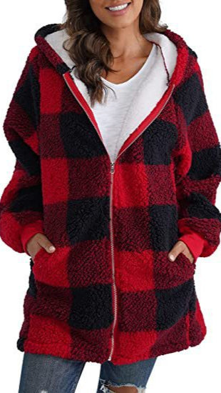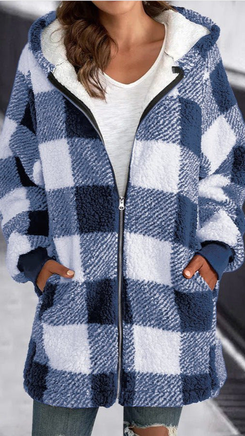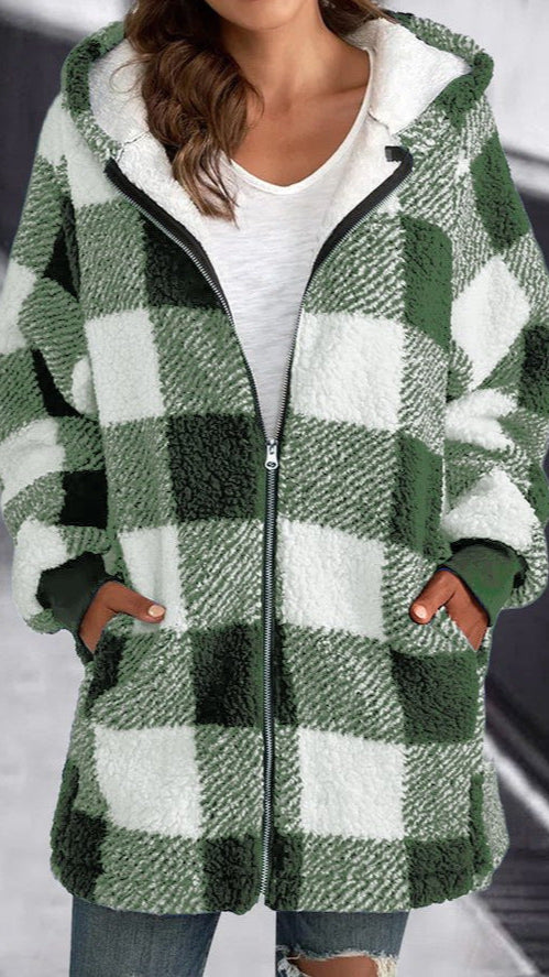 Moteriškas žieminis vienspalvis šiltas paltas su gobtuvu