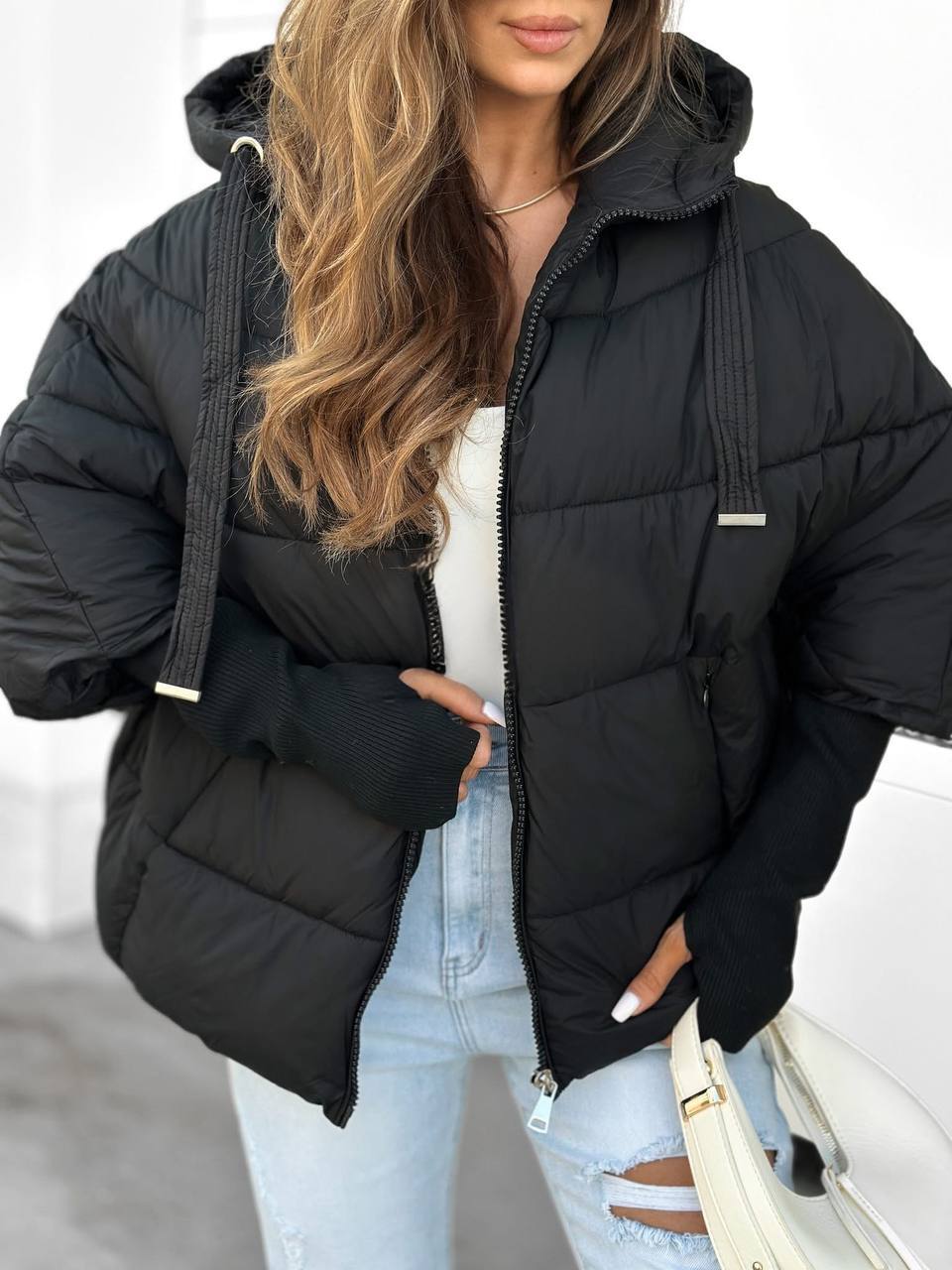 Šilta striukė moterims su madingomis rankovėmis