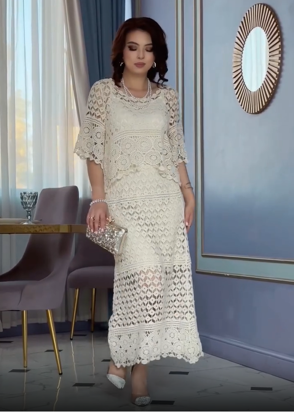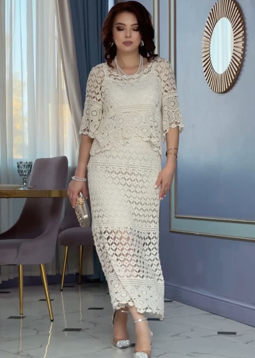 Moteriškas nėriniuotas dviejų dalių kostiumėlis