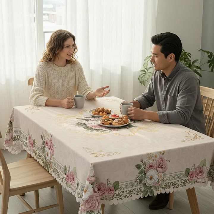 Vandeniui atspari gėlių rašto staltiesė